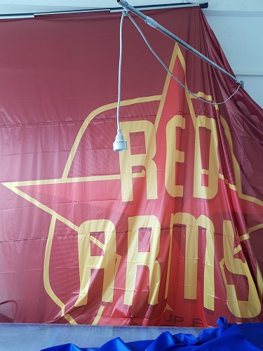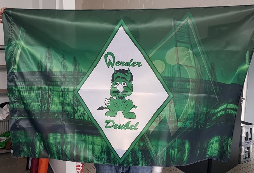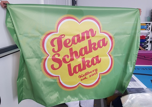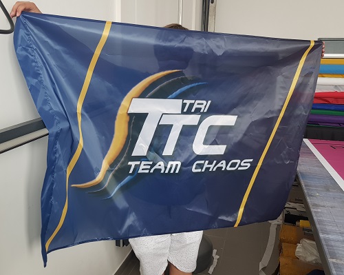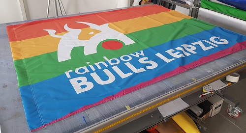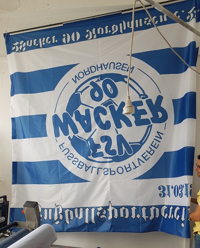 Le tissu standard FlagTex 110 grammes/m² a une forte image couleur sur le côté avant. L'intensité de la couleur, en particulier sur le côté arrière, peut varier (pénétration de la couleur 90-95%). Ce type de tissu est idéal pour les drapeaux jusqu'à 4x4 mètres.